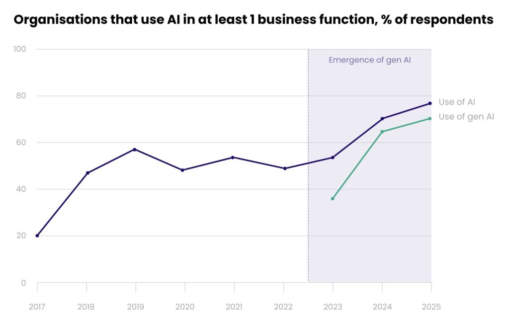 Recent surveys reveal a stark contrast: while 70-80% of large enterprises have rolled out generative AI, a similar share report no material financial gains. McKinsey attributes this to an imbalance between horizontalAI and vertical use cases.